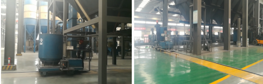 由于全自動布料機組不易拍攝,所以用該企業另一車間的布料機圖片代替。