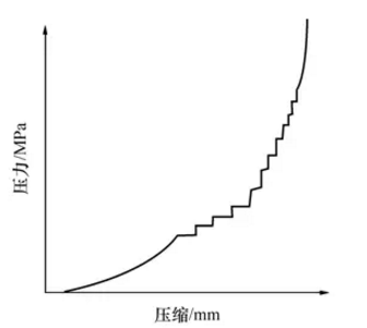 在這個(gè)階段中,耐火磚成型壓力已增加到能使泥料內(nèi)顆粒發(fā)生脆性和彈性變形的程度,所以在壓制時(shí)由于泥料內(nèi)顆粒受壓變形和多角型顆粒的棱角被壓掉,從而使坯體內(nèi)顆粒間的接觸面增加,摩擦阻力增大。因此,使這一階段的壓制特性表現(xiàn)為跳躍式的壓縮變化,即呈階梯形變化曲線;當(dāng)壓制進(jìn)入第三階段時(shí),成型壓力已超過臨界壓力,即使壓力再升高,坯體幾乎不再被壓縮。下圖的這種耐火磚對(duì)模具的要求和壓力機(jī)的選擇都要求很高。